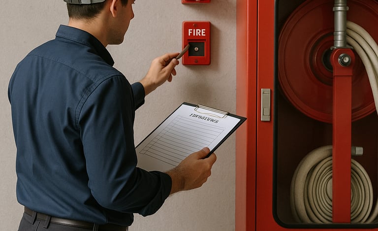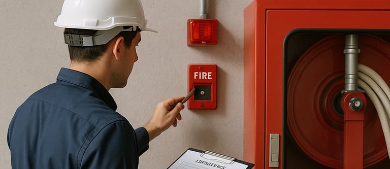 · الكشف على أنظمة الإنذار والإطفاء اليدوي والآلي.