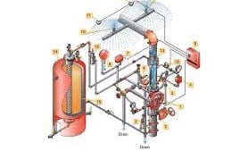 • تخطيط توزيع مضخات الحريق، والخزانات، ومسارات الأنابيب.